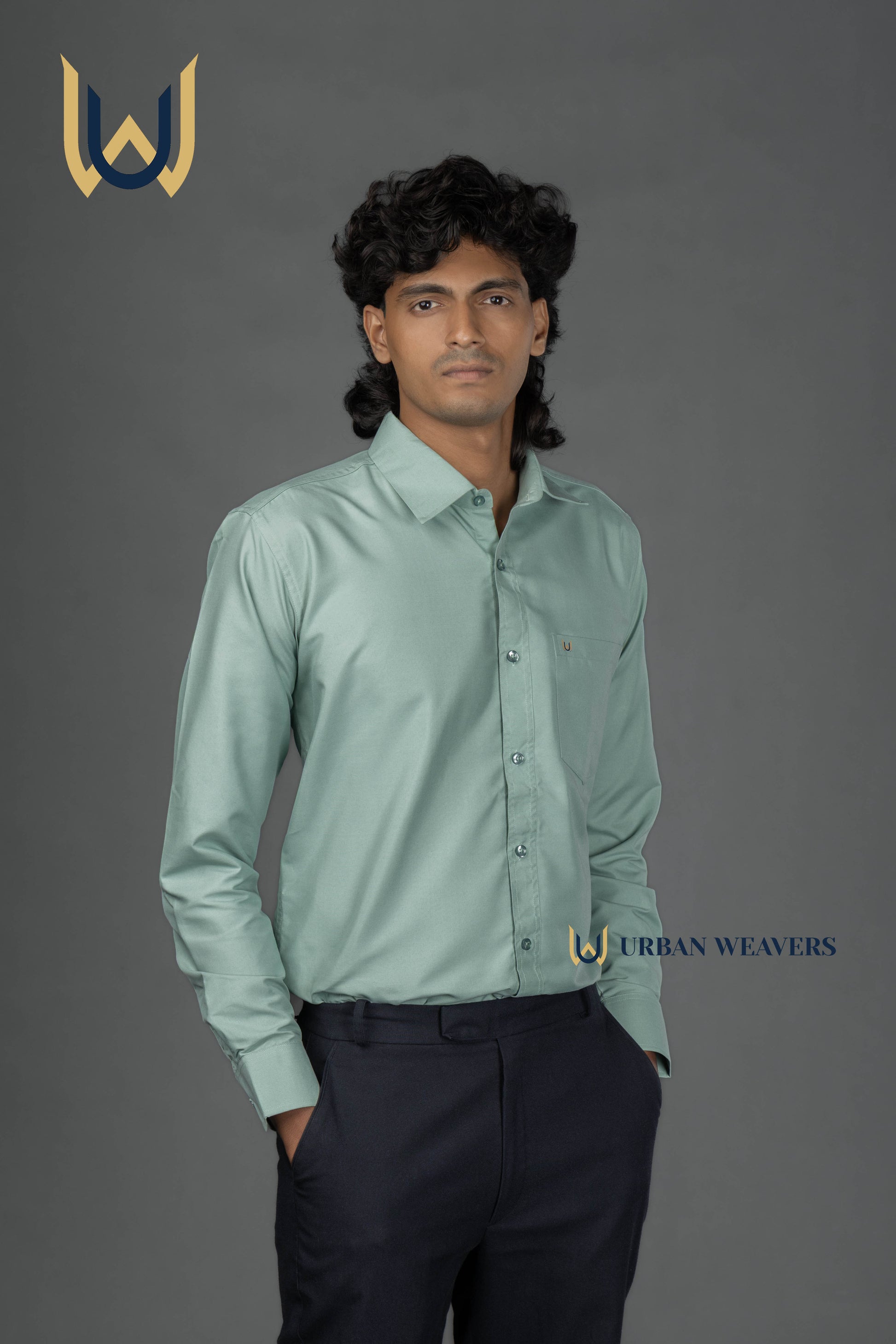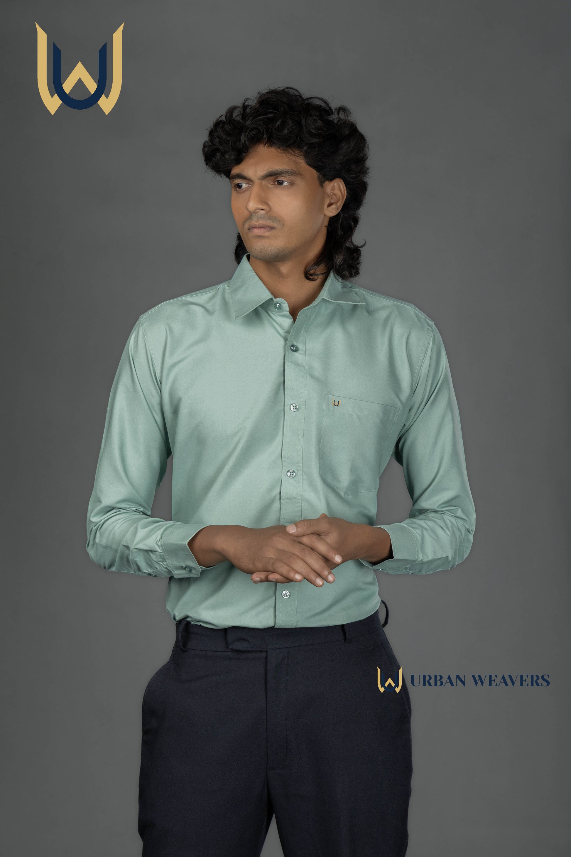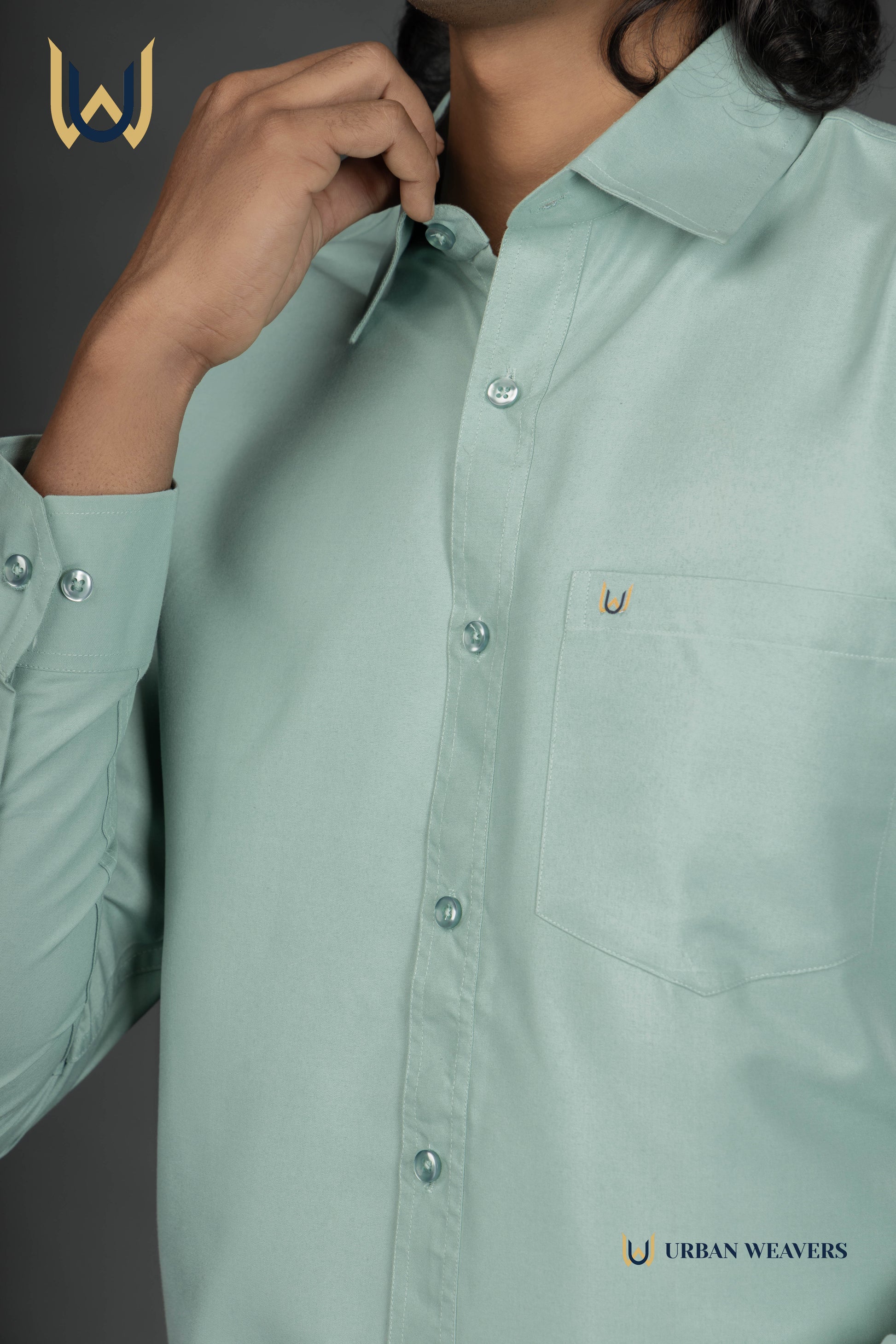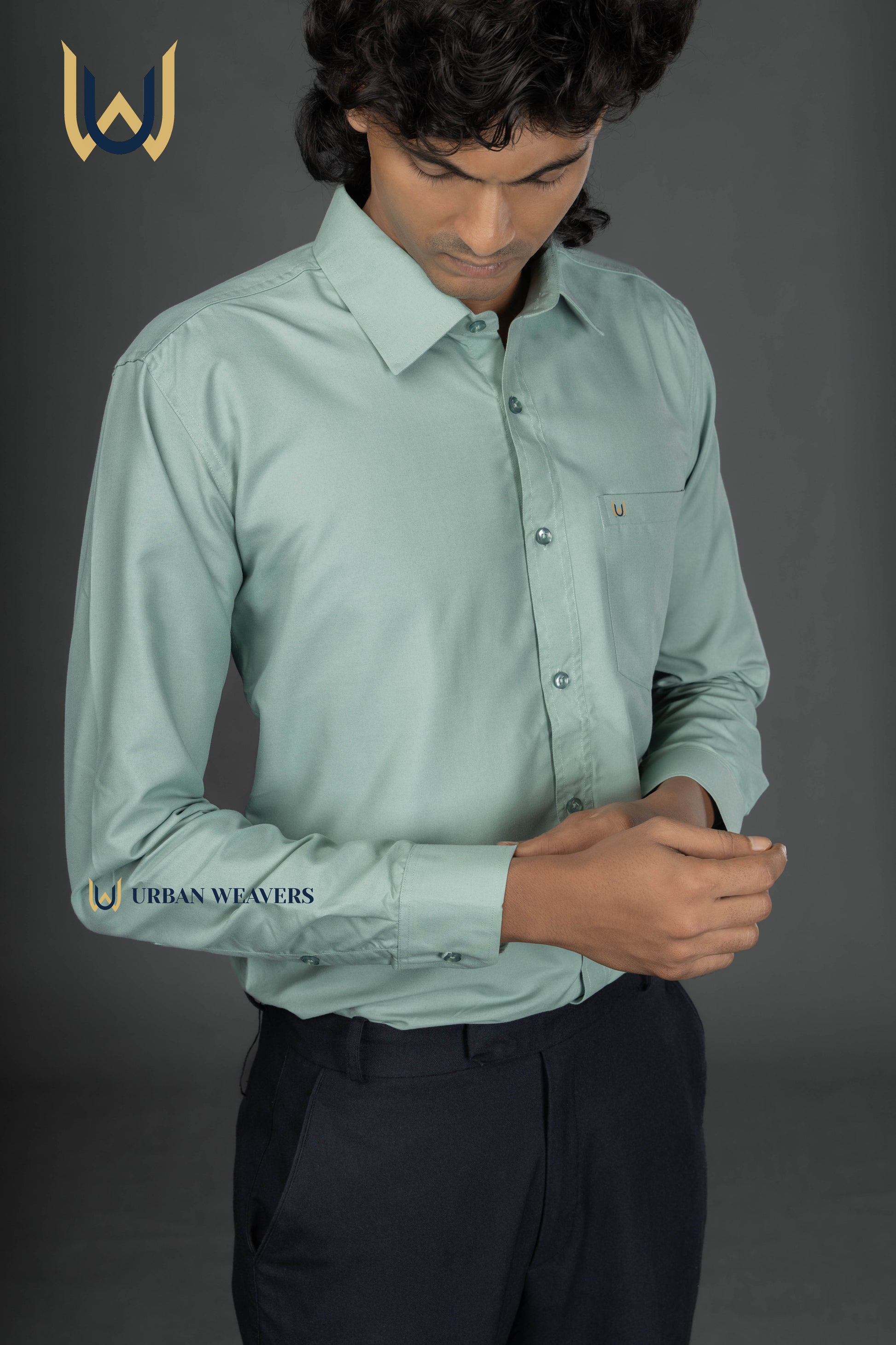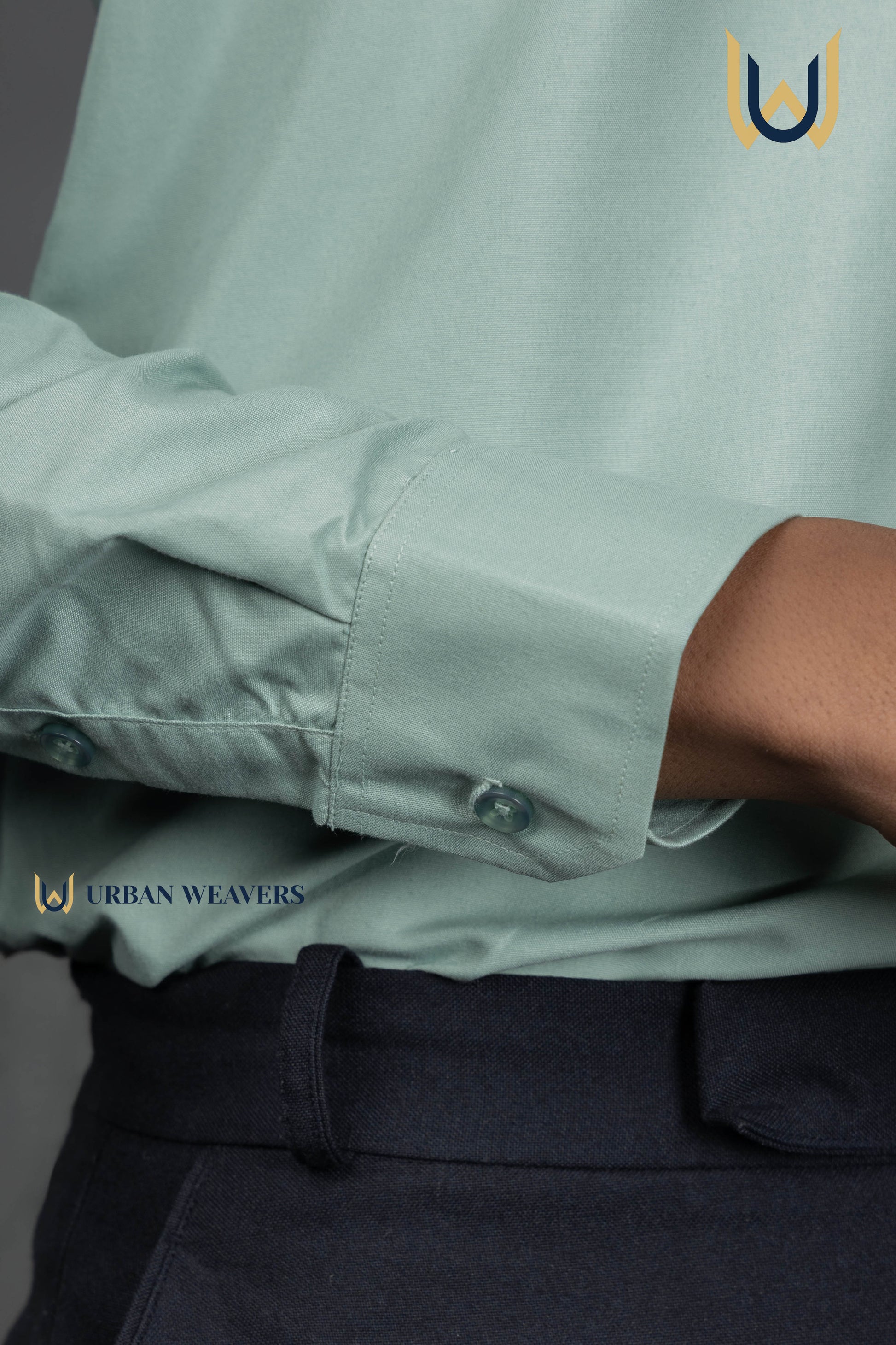 Full-sleeve cyan shirt featuring a rich solid tone, offering a warm and confident look. Designed with a straight cut and clean silhouette, it includes minimal detailing for a modern, versatile appeal.