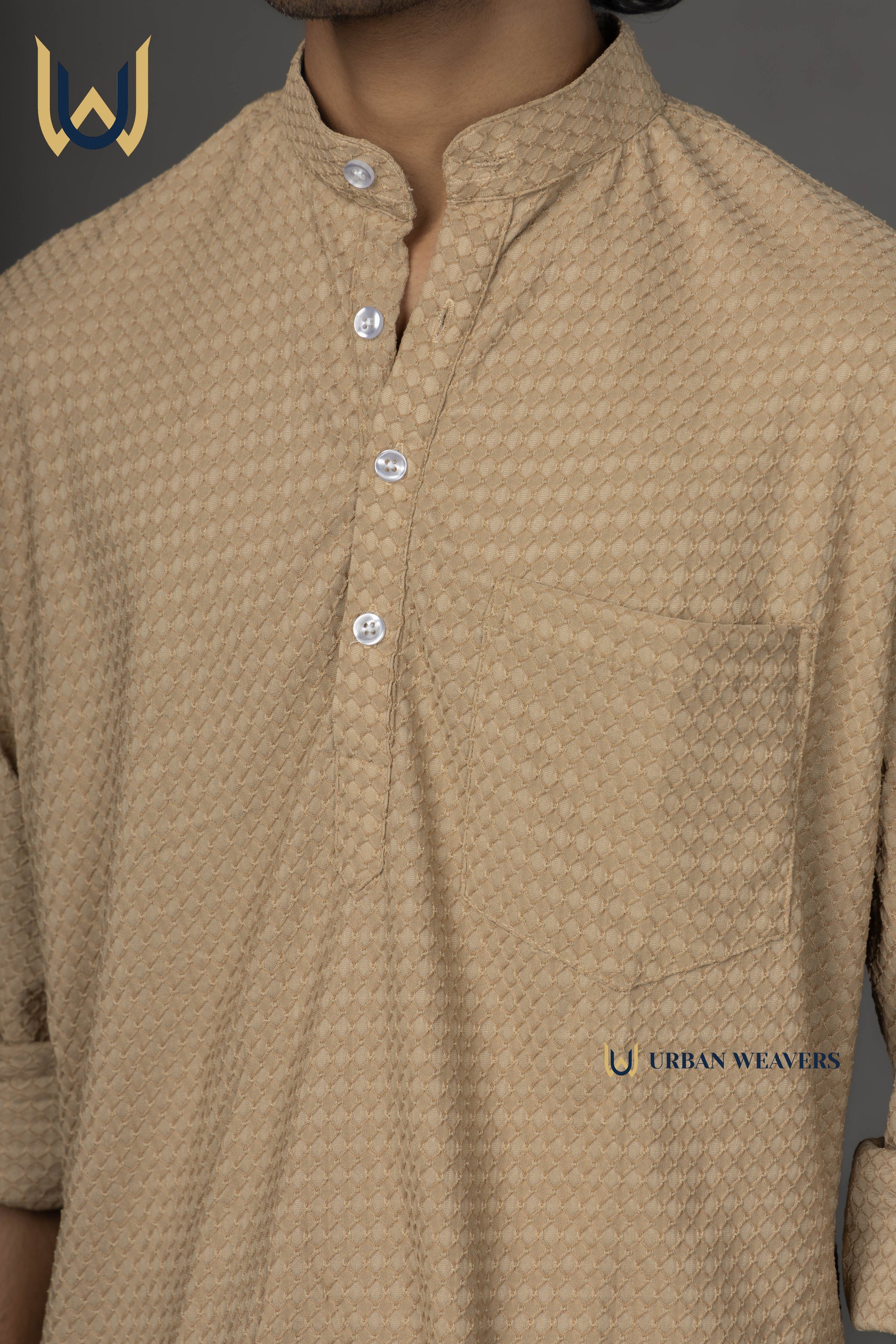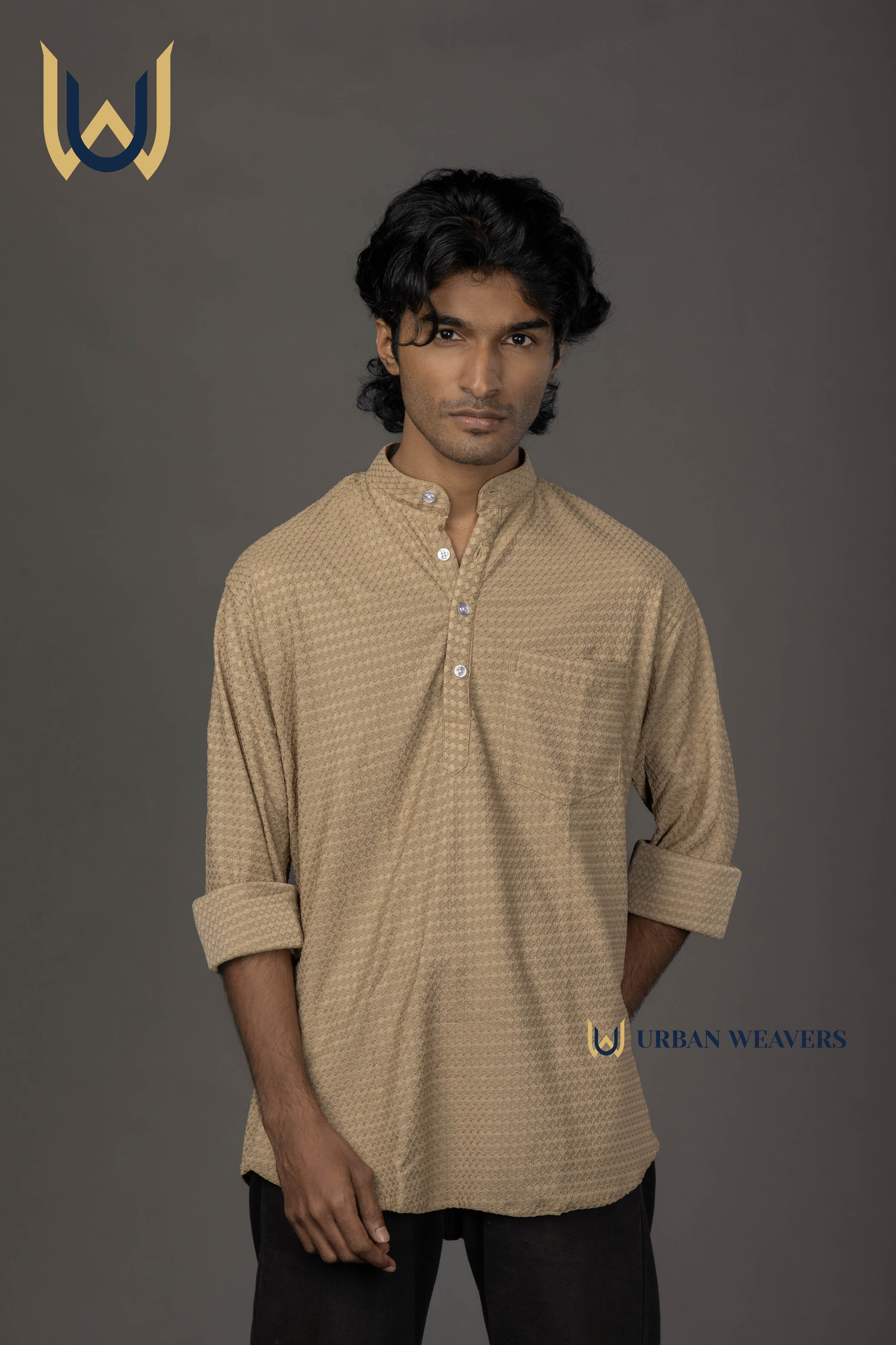 Short maroon Beige featuring a subtle textured weave, offering a refined and versatile look. Designed with a straight cut and minimal detailing at the back for a clean, modern aesthetic. Ideal for pairing with jeans or chinos for casual or semi-formal occasions.